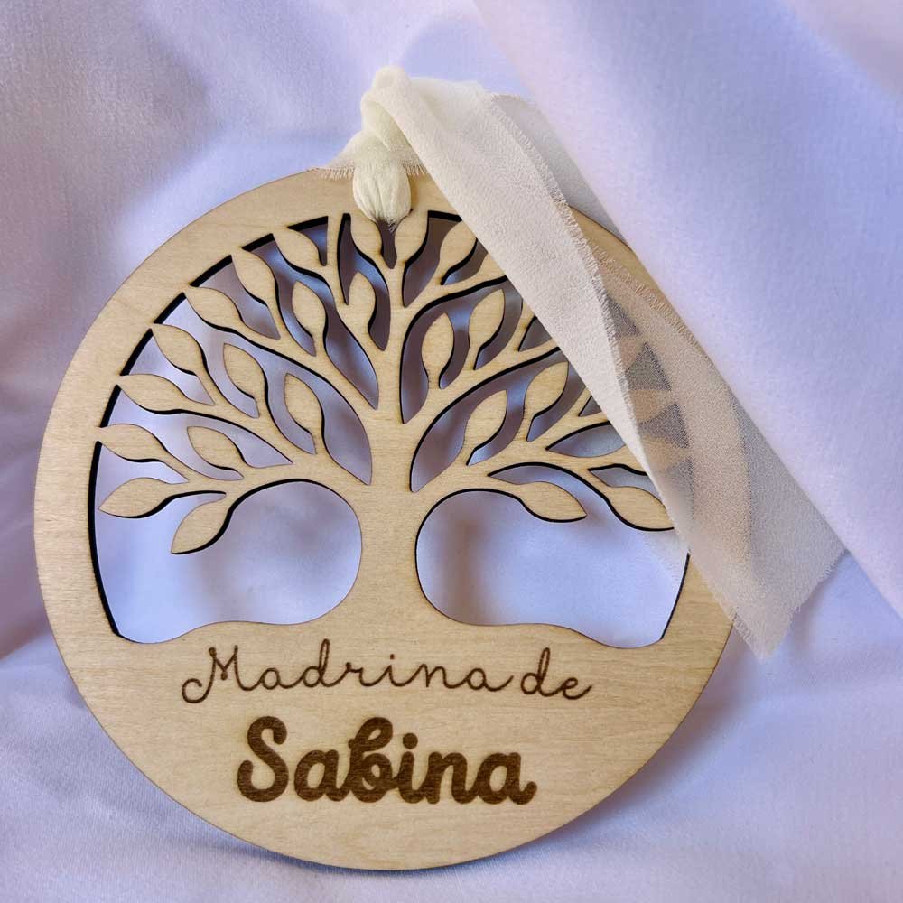 - Árbol de la vida de madera grabado y cortado a láser en nuestro propio taller, personalizado con el nombre del/la peque.