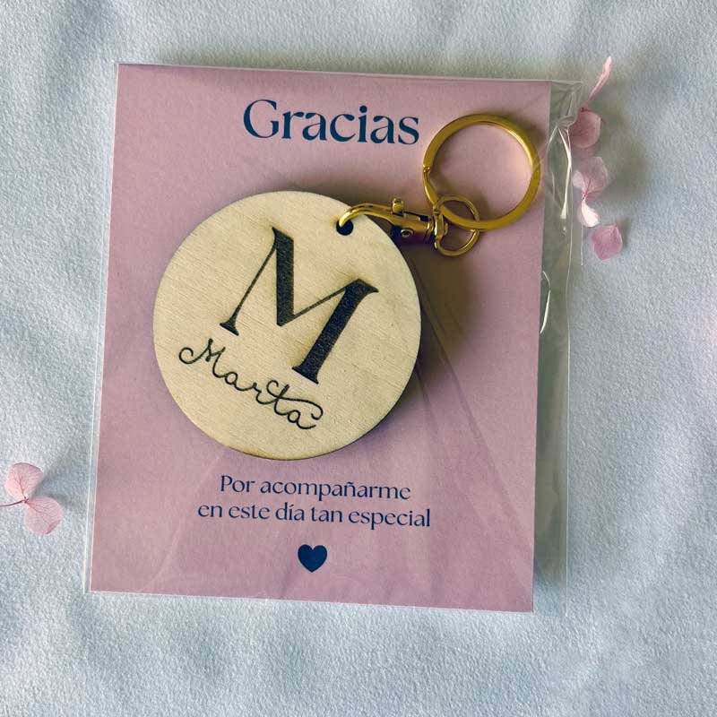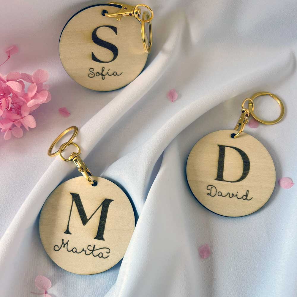 Llavero de madera personalizado con inicial y nombre